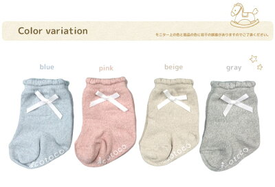 Newborn baby socks[新生児ソックス]リボン無地 7~9cm 滑り止め付き【1000円(税抜)以上お買い上げでネコポス送料無料!】オーガニックコットン ソックス リボン ベビー 男の子 女の子 子供服 おでかけ 靴下 イコトコ[icotoco]オリジナル