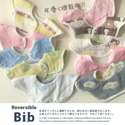 ファッション性と実用性にマッチしたリバーシブル360度クルクルコットンビブ お出かけに!360度で使えるリバーシブルスタイ。