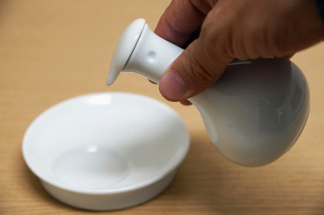 ※動画は「白磁鶴首 楽らくしょうゆさし」と「白磁丸型 醤油のすべり台」です。