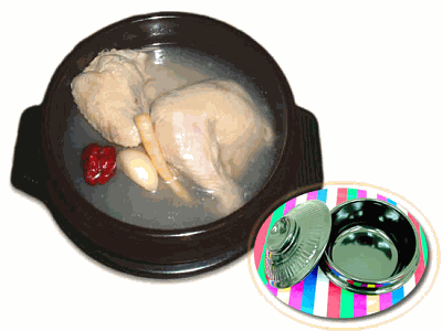 ■サンゲタンの詳細 もち米をつめたひなどりを丸ごと煮込んだ韓国料理です。