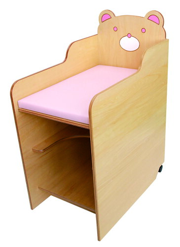 木製おむつ交換ワゴン(幅52×奥行82×高さ113cm) 赤ちゃん ベビー おむつ変え スペース おむつ変え台 マット付き 棚付き キャスター2箇所付き 持ち上げれば移動もラクラク 楽 簡易計測用の目盛り付 新生児 乳児 乳児室 丈夫 優しい くまさん