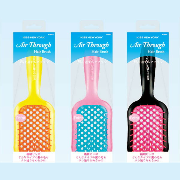 風を通すヘアブラシ!エアスルーブラシ Air through brush ●KISS NEW YORK 3色 ピンク/ブラック/イエロー● 軽量 頭皮マッサージ 速乾