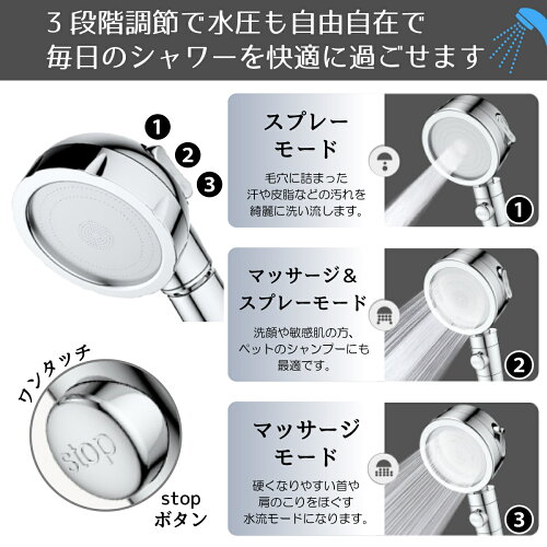 \大感謝祭ポイント10倍/【送料無料】 シャワーヘッド 節水 3D 水量調整 3段階 マッサージ シャワー 快適 スプレー 取り付け簡単 手元止水 ポイント消化