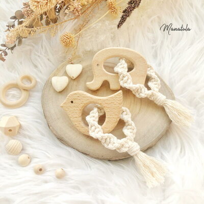 【マクラメ編み歯固め ひよこ/ぞうさん】 歯固めジュエリー 歯がため ベビー かわいい ポップ おしゃれ 人気 贈り物 誕生日プレゼント はがため ベビー 新生児 出産 乳児 ウッド ブナの木