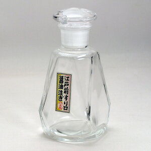 【 入り数 1個 】 当店お買上げ特典!! オリジナル醤油ラベルプレゼント!! 「江戸硝子」の伝統的な製法で作られ、栓と本体をひとつひとつ職人の手によってすり合わせられた、液だれのしない醤油注ぎです。